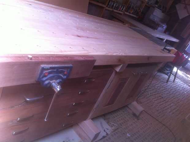 mi lugar de trabajo ha estado en constante renovación, una oportunidad que he tenido de recuperación muy buena madera que habrían terminado en un vertedero de basura de lo contrario. Desde la mesa de trabajo en mi garaje está lleno con mi número cada