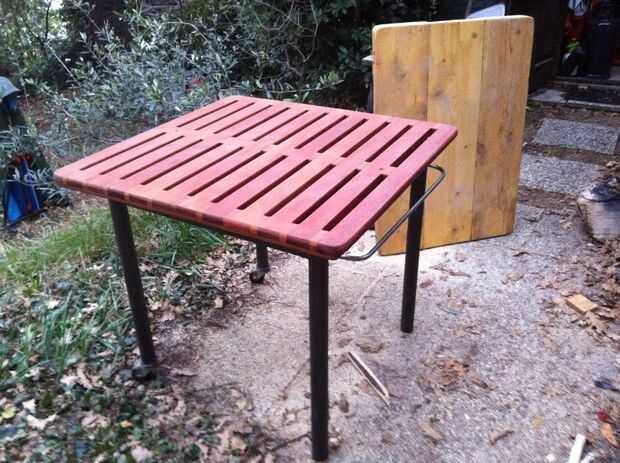 Después finalmente de un apartamento y una casa, descubrí que tenía espacio! Los inquilinos anteriores dejaron una mesa de altura de 2 1/2 pies en el garaje, pero era apenas ideal para hacer cualquier tipo de trabajo. Así nació la idea de un banco de