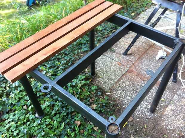 Después finalmente de un apartamento y una casa, descubrí que tenía espacio! Los inquilinos anteriores dejaron una mesa de altura de 2 1/2 pies en el garaje, pero era apenas ideal para hacer cualquier tipo de trabajo. Así nació la idea de un banco de