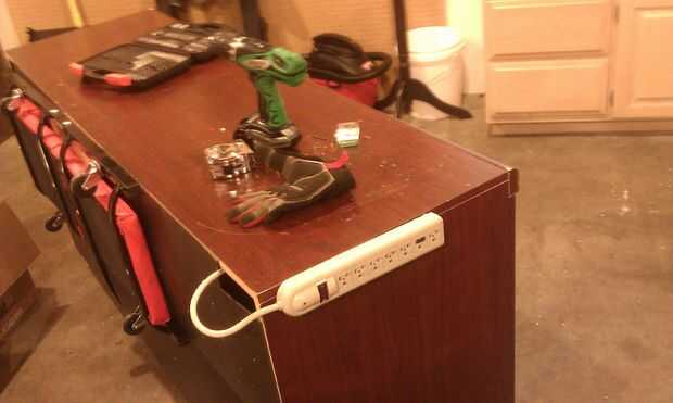 - Una tira de la energía, atada lado del Banco, me permite ejecutar varias electrónica y herramientas al mismo tiempo cuando está enchufado.