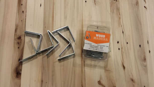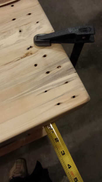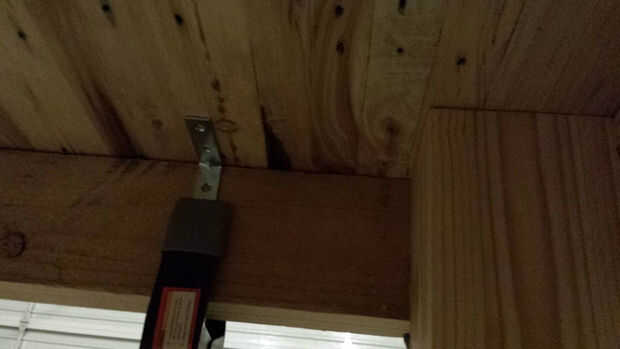Después de medir el voladizo a cada lado y satisfecho que quede uniformemente, yo otra vez sujeta la parte superior hacia abajo para no asegurar ningún movimiento mientras adjuntando los soportes.