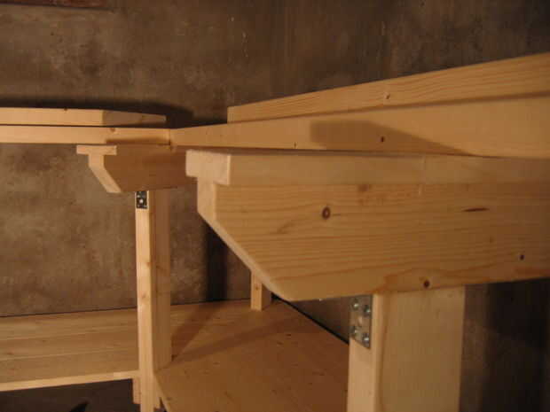 Tienes que calcular que los tamaños que deben utilizarse. Superficie de la placa de mi banco es de 800 mm de profundidad. Me da las siguientes anchuras de viga de madera estándar: