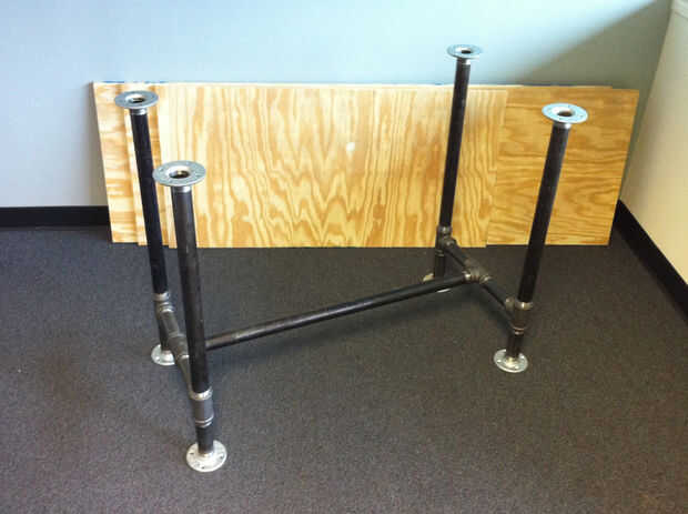 5. Mueva el ensamblaje del tubo sobre la mesa para que las secciones de pata corta apuntan ahora hacia arriba.