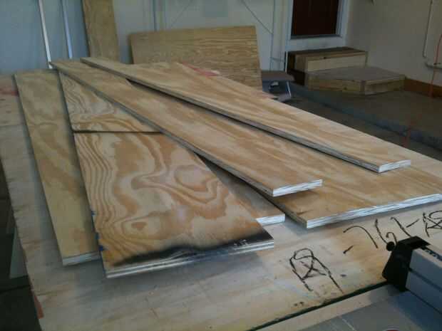 Recibí una hoja completa de BC ¾" madera contrachapada de HD. Es una pieza de corte miss que era 23 ½ "x 8' y 24 3/8" x 8' y en precios. Cada uno de ellos arrancó en dos piezas: 18" y 5" ancho, que sería mi mesa. Tengo algunos izquierda sobre madera contrachapada para hacer el resto. Luego se cortaron en 84" de largo.