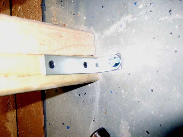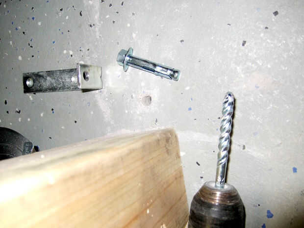 Ahora que el agujero se perfora y el anclaje en el hormigón, su escuadra y perno para el anclaje para concreto. Luego atornille el soporte a la pierna del Banco. Repita este proceso para cualquier otras piernas que tenga. Viola, ahora tienes un banco de trabajo super resistente que está anclado a las paredes y el piso que soportará cualquier cosa que usted puede lanzar en él. Si el Banco se hunde, también lo hará el edificio.