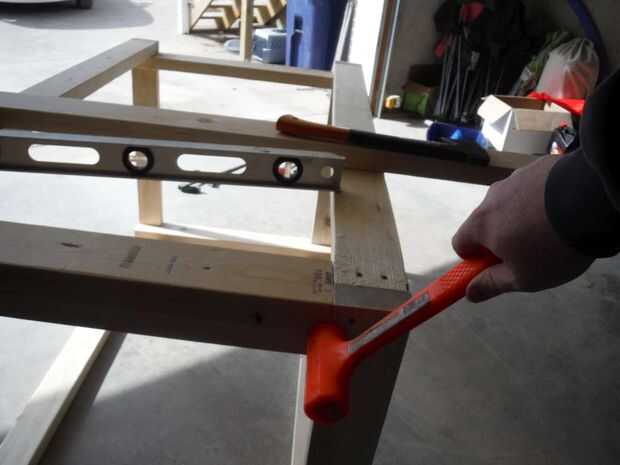 Para esta sección requerirá 4-30" longitudes de 2" x 4" para las piernas interiores y 4-23" longitud de las patas exteriores. Las piernas interiores tiene una espiga superior cortar en ellas medir 1½" profundo 3 ½" de largo, para que coincida con el marco superior e inferior.