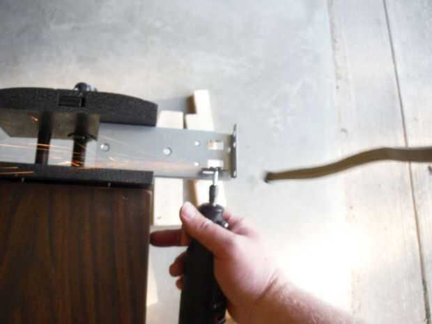 Después de que desaparecieron las piezas primavera pude moler las lengüetas de montaje para los clips con una herramienta Dremel Multi con una rueda de corte.