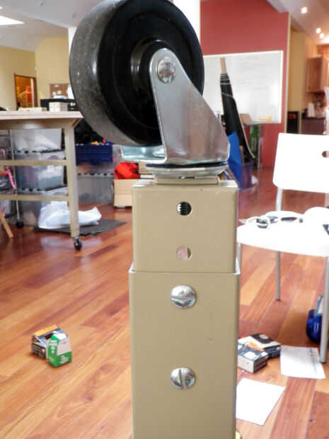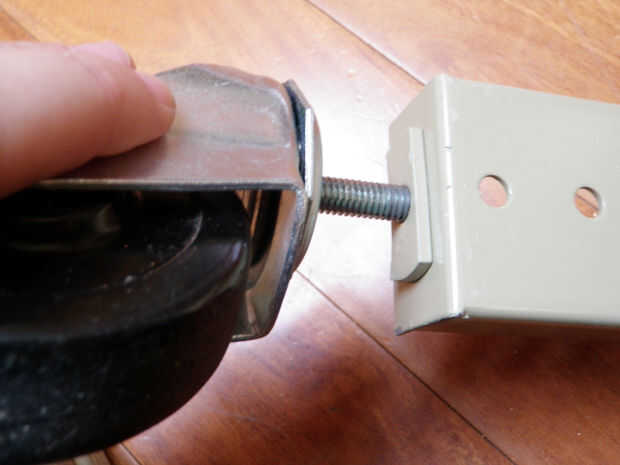 Para conectar las ruedas a la parte inferior de los puestos de la tabla simplemente los subprocesos en el lugar. Ajuste la altura de la mesa para que sea adecuado para usted.