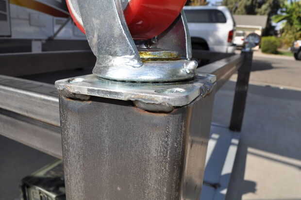 Las ruedas son de 5 x 2 pulgadas debe ser un poco exagerada pero hay una joroba desde mi garaje a la entrada que quiero que ruede suavemente. Encajan perfectamente en un lado pero donde un poco largo en el otro lado, por lo que solo dividirlo. Tierra de la galvanización, donde iba a soldar y tachuelas en el lugar. Hizo una soldadura de 1inchish continuación, se trasladó a la rueda siguiente y así sucesivamente. Esto les ayudaría a conseguir extremadamente caliente y fundir toda la grasa hacia fuera.