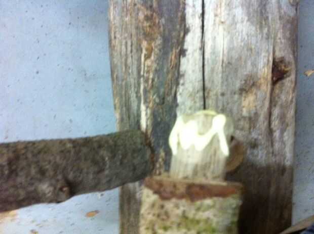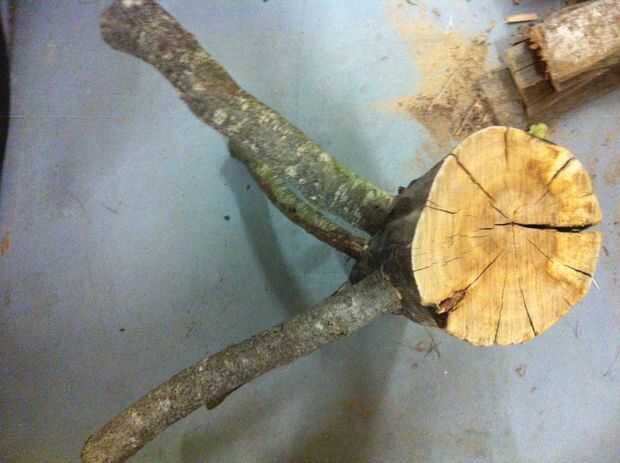 Lecciones aprendidas: Si utiliza ramas verdes son más fáciles de cortar pero se encogen cuando se seca, así que usar tornillos y pegamento o secar madera.