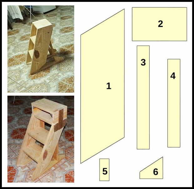 Praticamente, empleo sobras de Madeira de pinus. Como medidas aproximadas para un são escada (banco de o sem):
