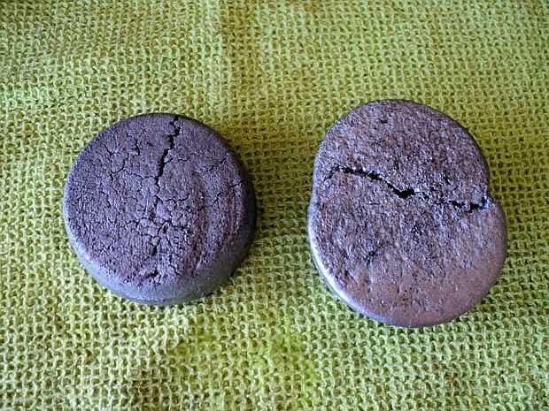 La primera imagen muestra qué sucede cuando usted desmolda rápidamente. Las magdalenas perdieron su forma y cristalizaron en roto formas. Debo haber esperado por lo menos 15-20 minutos, pero mi tiempo se atornilla para arriba y así... Va derretir otra vez sin embargo, por lo que no es pérdida.