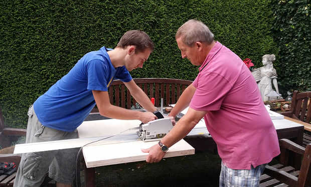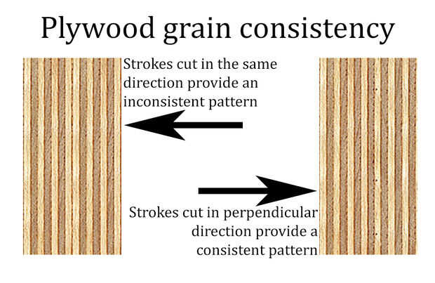 • Dirección a la sierra - como ya mencionado en la sección de material para el plan de la sierra, es necesario tomar en cuenta la veta de la madera. Para un acabado perfecto de su banco de trabajo desea que las capas de madera para ser cruzado, que se aprecia un patrón agradable. Desde madera contrachapada (la mayoría) consisten en una cantidad desigual de las capas (esto es tal que el grano en ambos lados de la madera contrachapada en la misma dirección) las piernas por ejemplo necesitan a cortar en 2 dirección de consistencia. Para una comprensión más clara he añadido una imagen.