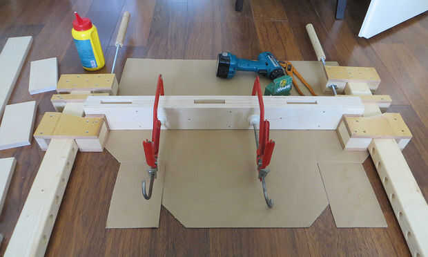 Una de las partes más difíciles de la construcción fue el pegamento-para arriba de las piernas y otras partes de la estructura. Usé pegamento y tornillos para el montaje que la Asamblea era tan fácil como sea posible y tornillos que no eran visibles en el resultado final. Las imágenes de este paso deben dar una buena impresión de cómo se ensamblan las piernas y camillas. Un resumen de instrucciones paso a paso se dan a continuación para una descripción completa.