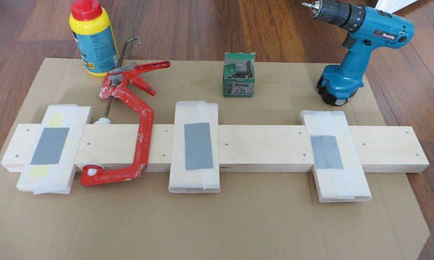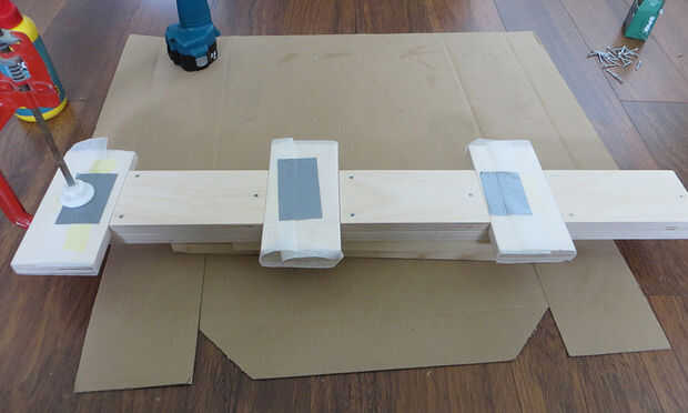 - Pegamento justo había atado trozos de madera y la tercera capa de tornillo en.