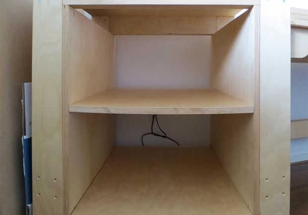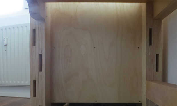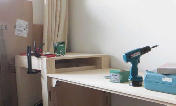 Una vez terminado el marco es hora de instalar la parte superior y estantes. Los estantes son muy sencillo y simplemente se atornillan en el lugar. Las dos tapas deben montarse en dos pasos. Porque la parte superior está destinada a ser reemplazable tiene que poder ser (dis-) ensamblado rápido y fácil. Así que la capa inferior de la parte superior se monta primero desde arriba y no es que se elimine la tabla. Las capas de dos montan desde la parte inferior que ningún tornillo esté visible pero la parte superior todavía se puede quitar relativamente fácil.