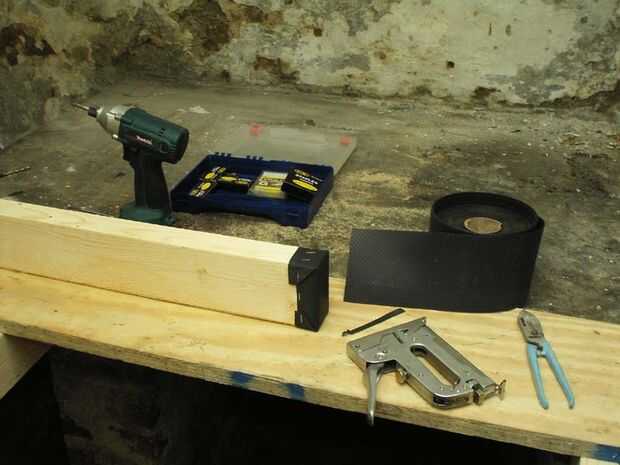 Mi sótano es también un poco húmedo debido a esto, así que hice un poco de arranque para cada pierna ayudar a mantenerlo caliente y seco... Un poco de material del curso de prueba húmedo engrapada en...