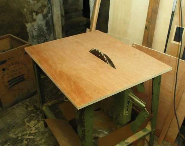 Como se puede ver en el paso anterior. Mi plan era tener un espacio en el medio donde podía dejar caer en la Sierra de mesa o una mesa de fresadora o cualquier otro accesorio que necesario. La Sierra de mesa es el primer bit, así que corte un poco de la capa 3/4" para caber en mi agujero preprepared. Este resto en una pequeña repisa en tres de los lados cerrados.