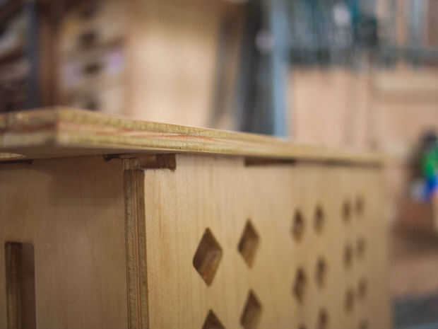 - Después se unieron todas las piezas de las cruzadas, martilló el panel posterior en su lugar. Fue un poco difícil hacer las espigas alinear en dos planos diferentes, pero fui capaz de hacerlo.