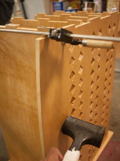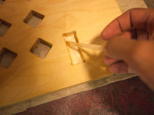 - Pongo epoxi en las mortajas en un lado del Banco. Luego usé mi mazo para cada una de las piezas de Cruz en su lugar. Yo estaba preocupado de las partes podrían no caber con el barniz añadido, pero trabajaron bien.