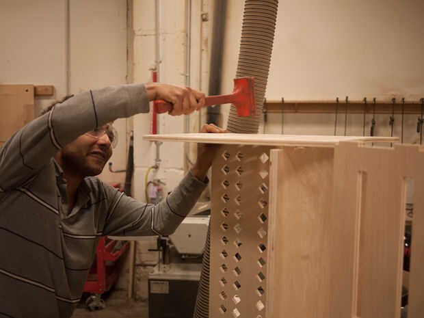 Respiraba una señal de alivio cuando fue cortado - era capaz de hacer todas las articulaciones encajan agradable y apretado. Tuve un susto durante este paso, sin embargo. Parece que he podido cometer un error en mi modelo original - coloqué la mortaja y espigas ligeramente fuera del centro, por lo que la parte trasera del Banco no es absolutamente simétrica. Esto causó algunos problemas menores de la Asamblea, pero afortunadamente era sólo lo suficientemente cerca como para trabajar - yo ahora he modificado los archivos para corregir el mal alineamiento.
