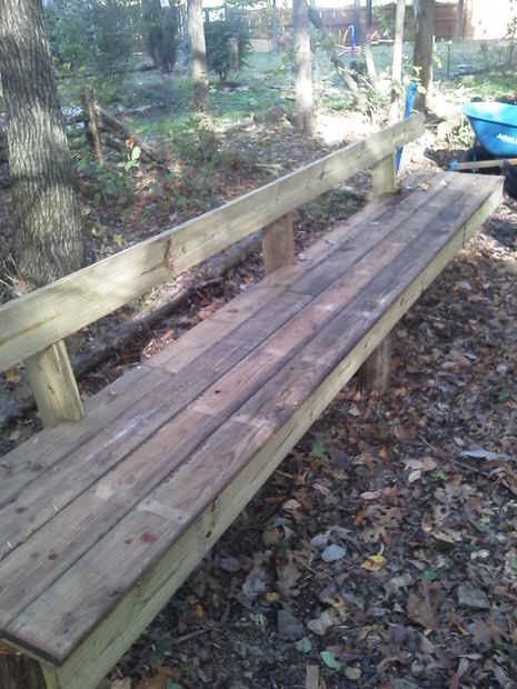 he utilizado algunos extra Deck que tenía.  Más tarde, use limpiador de alguna cubierta de sobra y me mancha entonces el Banco entero.  Yo también muescas en las tablas de cubierta 'posterior' a alrededor de los soportes de respaldo.