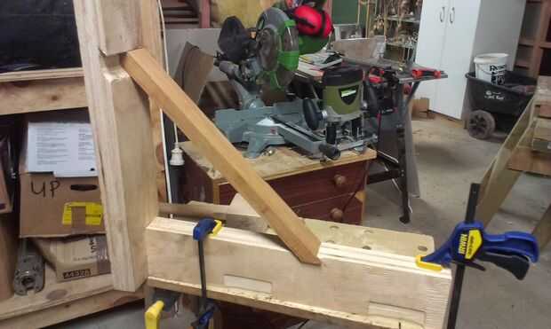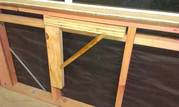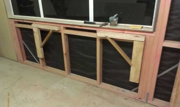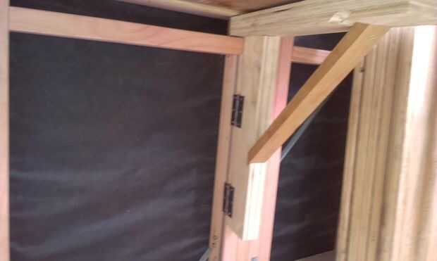 hice un par de soportes con bisagras entre los montantes. Yo también quería que encajan en la pared, pero esto resultó un poco complicado así que lo hice lo mejor que pude.