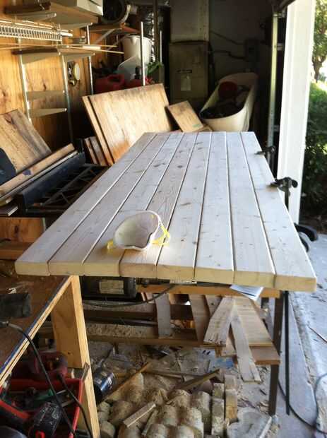 Recuerdo que este paso es muy difícil. Después de cortar a unos 6 pies de largo comencé a pegar y sujetar. Las abrazaderas mantienen deslizamientos las juntas, debido a su longitud. Finalmente llegué a poner derecho bastante arena y tornillo en tres soportes transversales para mayor estabilidad. Esta tapa terminó siendo muy pesado.