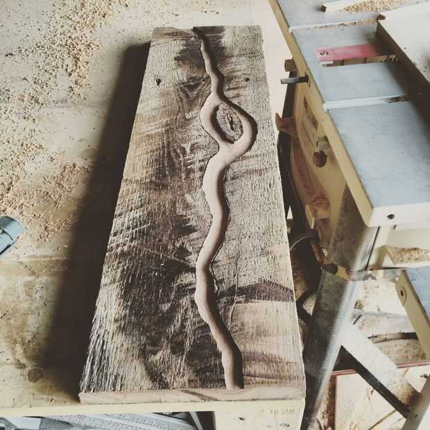 Después de ejecutar un viejo pedazo de madera de granero con el cepillo un par de veces, miré a la madera y había un nudo genial y un agujero en medio de lo que parecía una isla. Así que dibujé un río está dividido por la isla a la madera y con una broca de corte al ras encamina hacia fuera un poco más de 1/4 pulgada en profundidad de la madera siguiendo las líneas que había creado para el río.