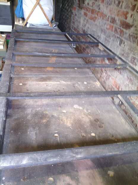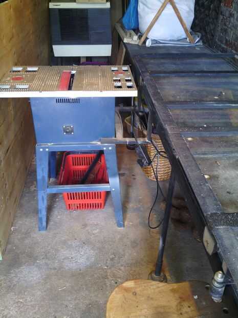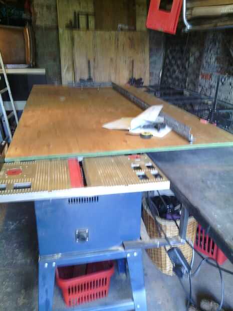 Como puedes ver ya he cargado una hoja de madera en el sistema de rodillos. Este banco ocupa mucho espacio, pero utilizo para mi trabajo del metal, puso mi corte de máquina en el extremo y mover el metal más cerca con el sistema de rodillo para cortar. También lo uso para mi cabina de aerosol temporal que construyo cuando sea necesario.