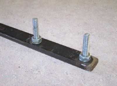 Coloque una arandela en cada tornillo y apriete una tuerca en cada tornillo. Los tornillos son de 1 1/2 pulgadas de largo cada una.