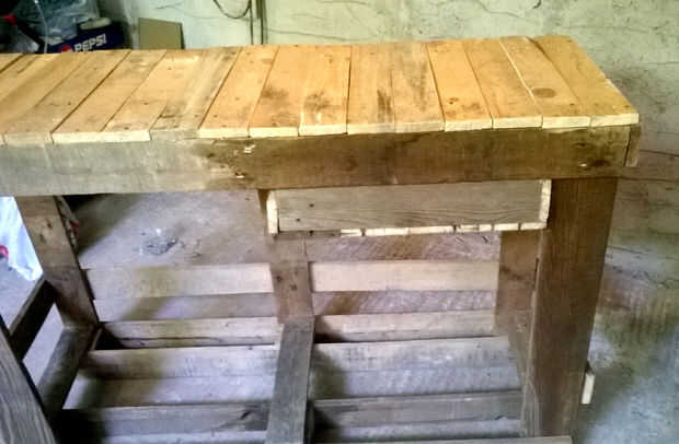 Se trata de un robusto Banco de trabajo con pies regulables mediante una mesa reciclada que se puede substituir más adelante con otra cosa.¿Por qué hacer esto ? Es muy divertido para aprender, experimentar con algunas técnicas y mucho más barato que