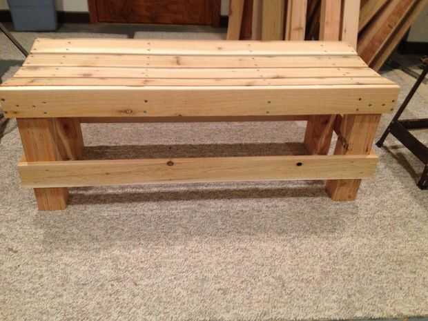 un banco simple de 8' longitudes de 2 x 4 deck de madera tratada para uso al aire libre con 2.5" Deck tornillos.