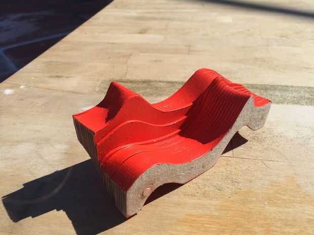 Analicé la curva ideal para un salón de la calesa, basado en las dimensiones humanas y más o menos siguiendo la curvatura de los Eames sillas y otros muebles exitosa. Sacó de esta curva en Rhino 3D y continuó la curva para incluir una barra de asiento de taburete en la espalda así. A continuación refleja esta curva y tiró de él hacia fuera de 40 pulgadas (en la dirección de X) de la primera curva. Esto permite un amplio espacio para dos asientos "tiras". Levanté ligeramente una curva para crear una topografía más ambigua de espacios de estar. Puse unas cuantas curvas más entre estos dos al marco más la transición de una curva a otra y finalmente abuhardilladas estas curvas para crear una superficie lisa que yo sea refinado un poco con el Autodesk T-Splines plug-in para Rhino.