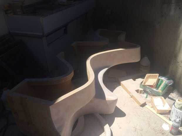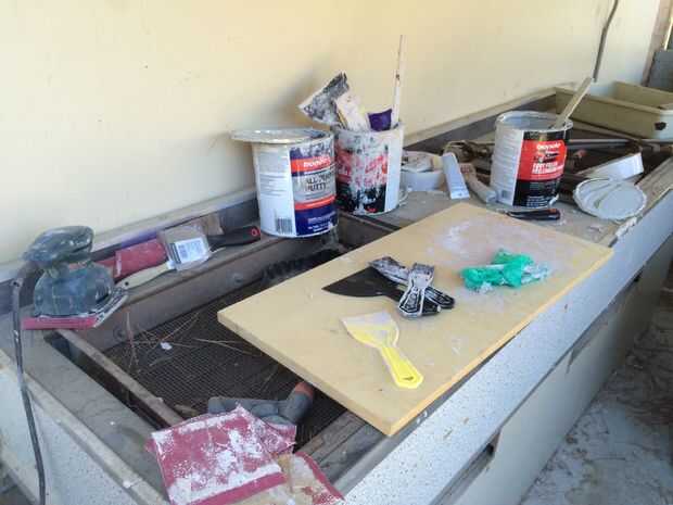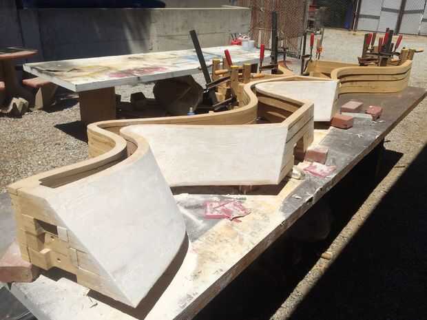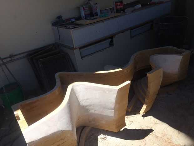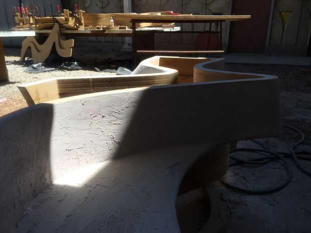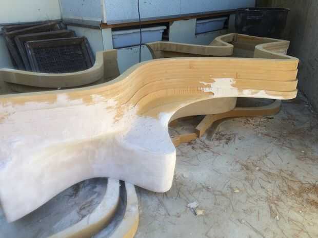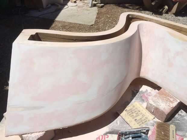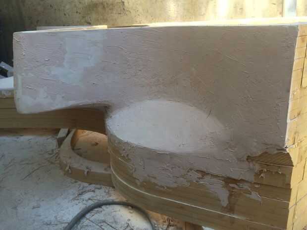 Yo no arena las piezas de las ranuras de trayectoria de desbaste debido a que estas ranuras permiten el Bondo se adhiera más fácilmente al MDF. Bondo se aplican a todas las superficies inclinadas y arena hasta que quede suave. Me llevó un total de 7 tinas de Bondo.