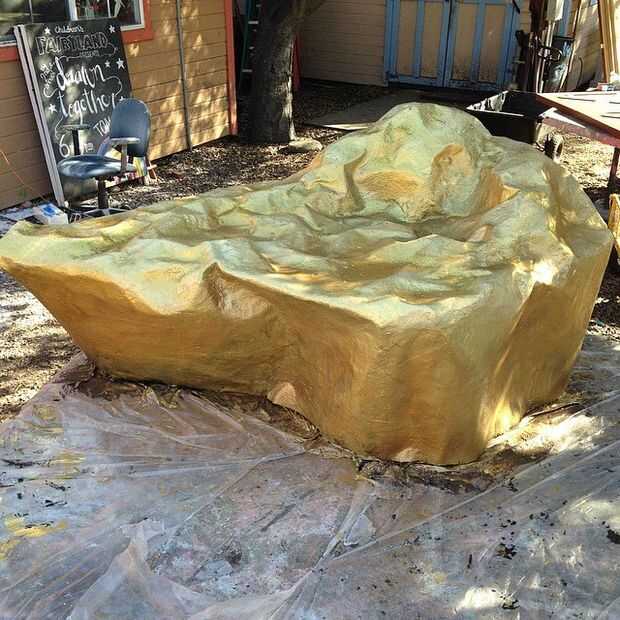 - Siga las instrucciones de Magic Sculpt y junto con el cartón, espuma y alambre de pollo crear el volumen y la topografía de la banca