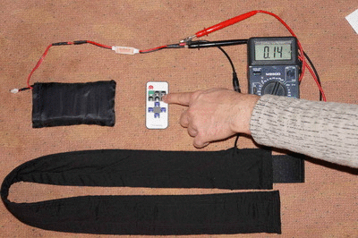 Barato y confiable regulador RF permite la alimentación a una distancia de más de 5 metros. Es tan pequeño que puede ser soldado directamente a la batería para hacer una batería con salida de conmutación remota. Y usted puede coser RF controlador directamente dentro de cualquier prenda de ropa. Usted puede solicitar se de 5 a 24 voltios y hasta 12 Amper! Ahora, si es necesario, en el toque de un botón puede activar el calentador a todo trapo, si muy frío alrededor. Y si no muy frío y necesita un poco de calor, puede convertirlo en muy poca energía, y entonces la batería durará muchos, muchas horas.