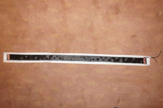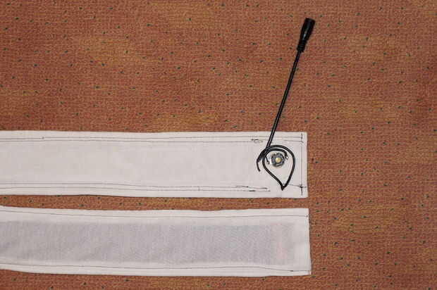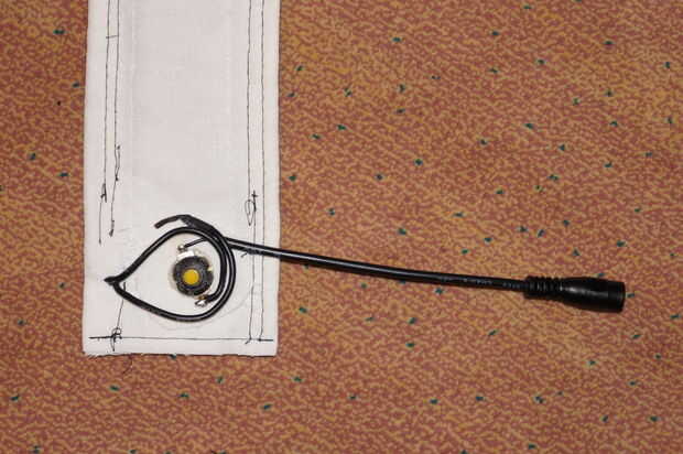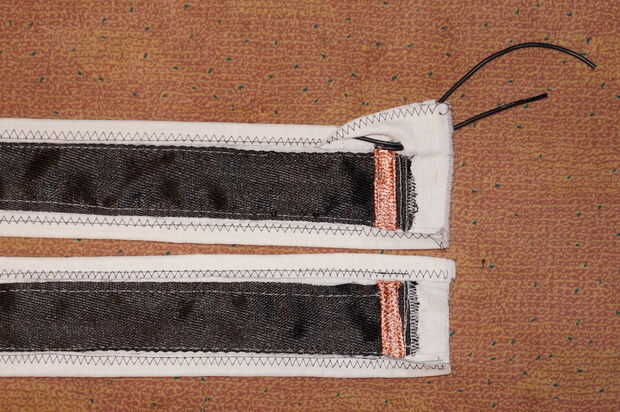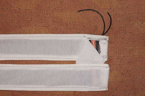 Borde de las tiras blancas de doblado y cosido, por lo que forman un canal por cable.