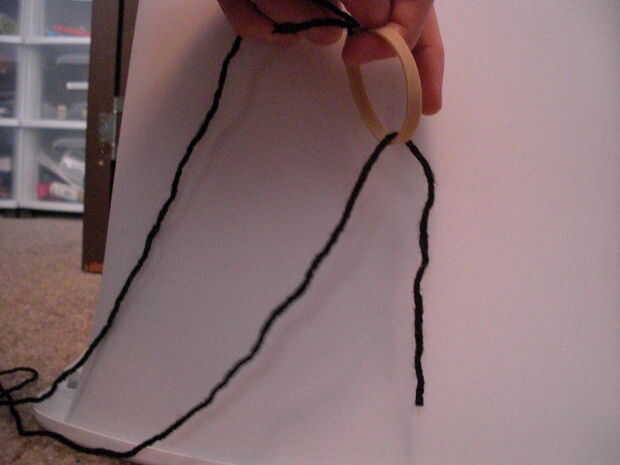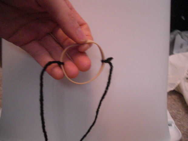3) atar una banda elástica a un extremo del hilo. Ver foto #1.
