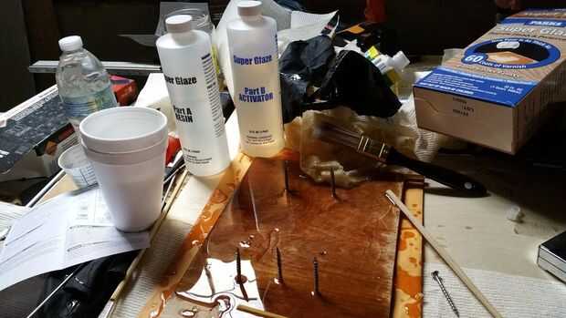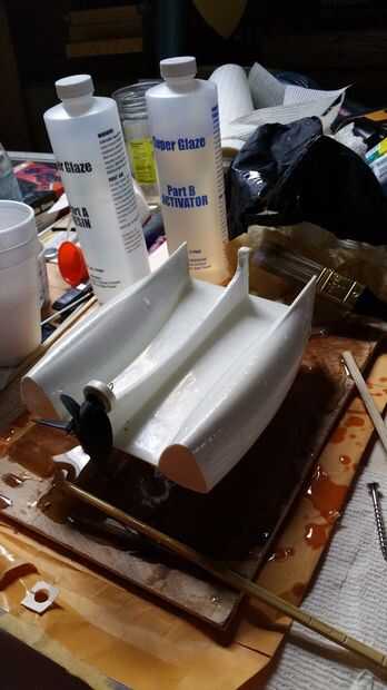 - Siga las instrucciones del producto, mezclar y verter la capa de epoxy en el cuerpo del barco y dejar secar