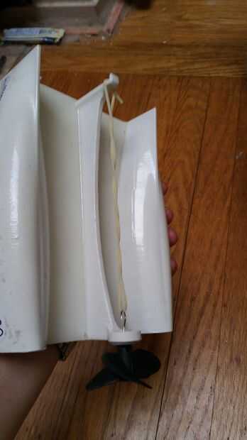 - Coloque el fondo de cuerpo del barco hacia arriba, descansando sobre los tornillos del paso anterior
