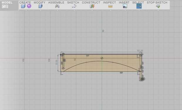 - Volver a la viga de centro de dibujo y añadir un rectángulo vertical de unos 5mm de la parte delantera de la cubierta. Esta es la madre del gancho de goma y su refuerzo.