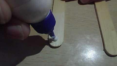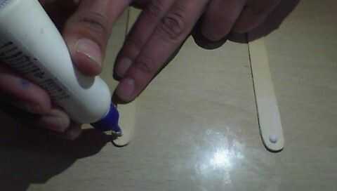 Poner el fevicol en un extremo de un palito de helado ahora similar puesto fevicol en un extremo del otro palito de helado. Estos palillos de dos helado actuará como barras laterales de nuestro barco y estas barras laterales deben ser fuertes porque tienen que soportar la fuerza de la banda de goma estirada.