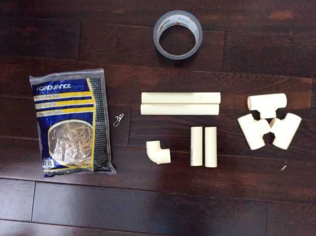 Usted necesitará hacer su francotirador de goma tres piezas T, dos de seis pulgadas de PVC piezas, dos tres pulgadas piezas PVC, un vértice, una banda de caucho, cinta adhesiva y un clip.