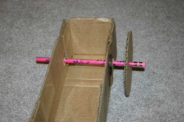 Empujar una rueda sobre un lápiz, luego empuje el ensamblaje de lápiz y rueda por la parte posterior del coche.