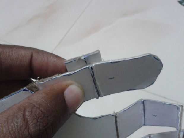 Ver la imagen sólo el 50% de las piezas cortadas hasta la línea que sólo se pega en la mano. Restante la ley como el tapón mientras mano ampliar.