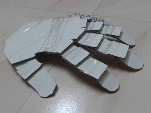Ponga las piezas cortadas en la parte posterior de la huella de la mano y pegar (si utilizar arma su rápido y fácil no tengo ningún arma de pegamento que utilizar cinta Selefon).