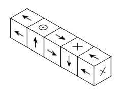 Sólo hay que poner mucho de imanes en una fila, cada uno rotados 90 grados en relación con el anterior, como este...