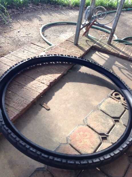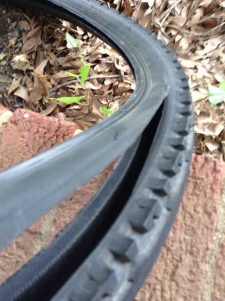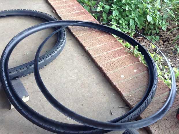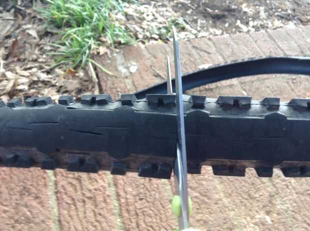 Luego usé las tijeras para cortar el lazo de la pisada del neumático en una tira larga