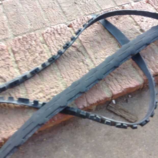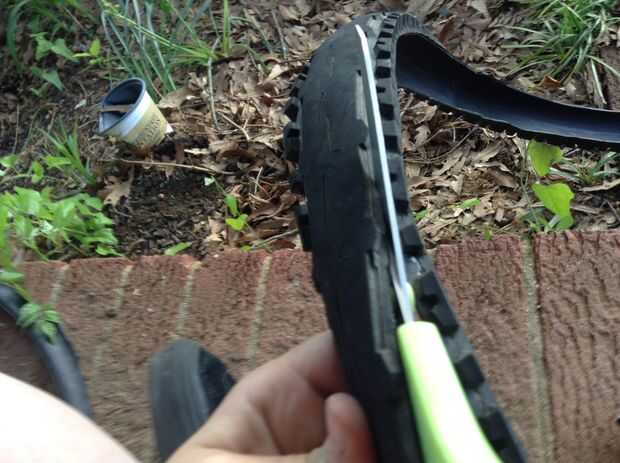 cuando tratan de cortar el borde del neumático apagado I mantener las tijeras en un ángulo para que cuando la correa se realiza se sentará aplanador.